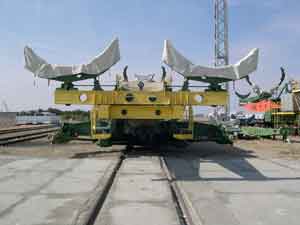 Le lanceur est amené à l’horizontal par ces wagons puis levé.